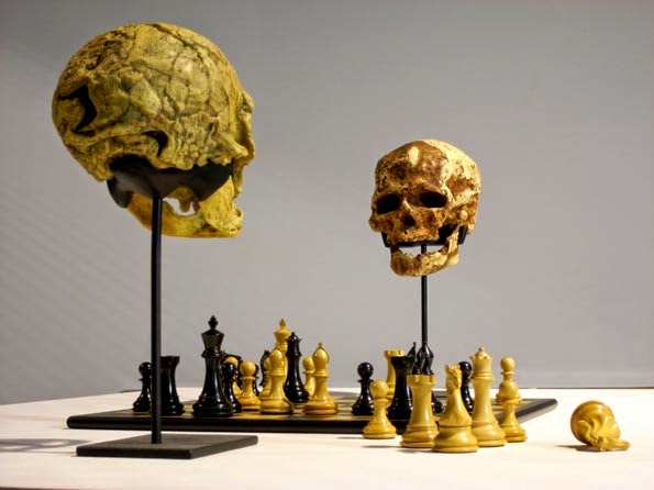 Toulouse. Mientras trabajaba en su jardín, en agosto de 2009, el artista Arno Fabre descubrió un conjunto de fósiles en un estado excepcional de conservación. Bautizado "la Siempreviva", en honor a la partida de ajedrez así llamada, el hallazgo consistía en un cráneo de Neandertal (homo neanderthalensis; a la izquierda) y un cráneo de Cromañón (homo sapiens; a la derecha) reunidos en torno a un tablero de ajedrez. Este descubrimiento proporcionó una prueba arqueológica fundamental para determinar el cómo y el porqué de la desaparición del hombre de Neandertal de la faz de la tierra hará ahora unos 30.000 años.