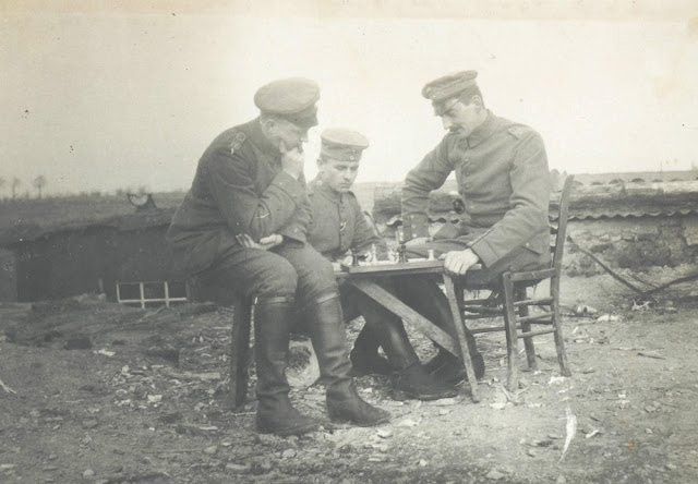 "Enfermera jugando al ajedrez con un soldado herido" obra del pintor francés Alexis Louis de Broca realizada en 1917.
