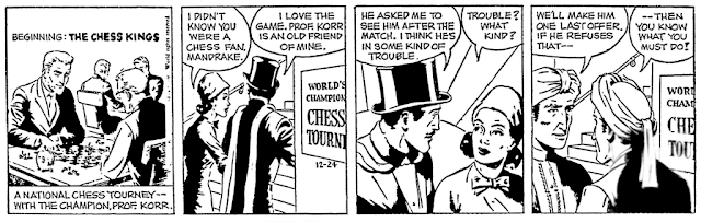 La nonagésima aventura de Mandrake, iniciada el 24 de diciembre de 1956 y finalizada el 2 de marzo de 1957, se tituló "The Chess Kings". En ella, Mandrake y Lotario tienen que resolver el secuestro de un viejo amigo del mago, el profesor Korr, un ajedrecista profesional. Korr ha sido raptado para ayudar en una contienda que enfrenta a dos pequeños países, llamados Gambetia y Philador, y que los ha llevado al borde de la guerra. Los reyes de esos países están obsesionados con el ajedrez y mantienen una rivalidad en la que cruzan las más desorbitadas apuestas.