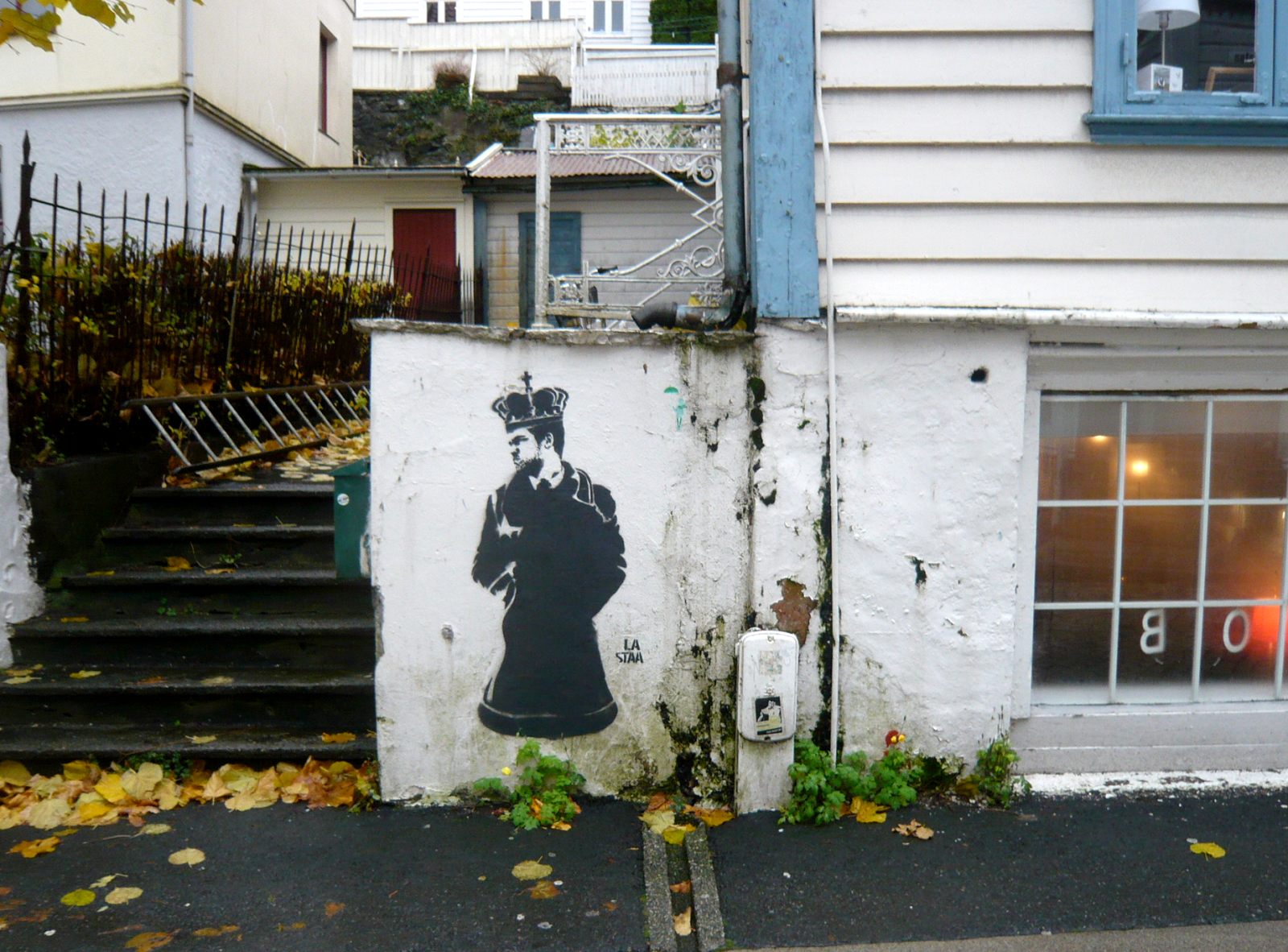 Aprovechando que se está disputando el mundial de ajedrez en Sochi, traemos a Artedrez al vigente campeón convertido en rey de ajedrez por el artista callejero noruego La Staa. El stencil de Magnus Carlsen está en las calles de Bergen (Noruega)